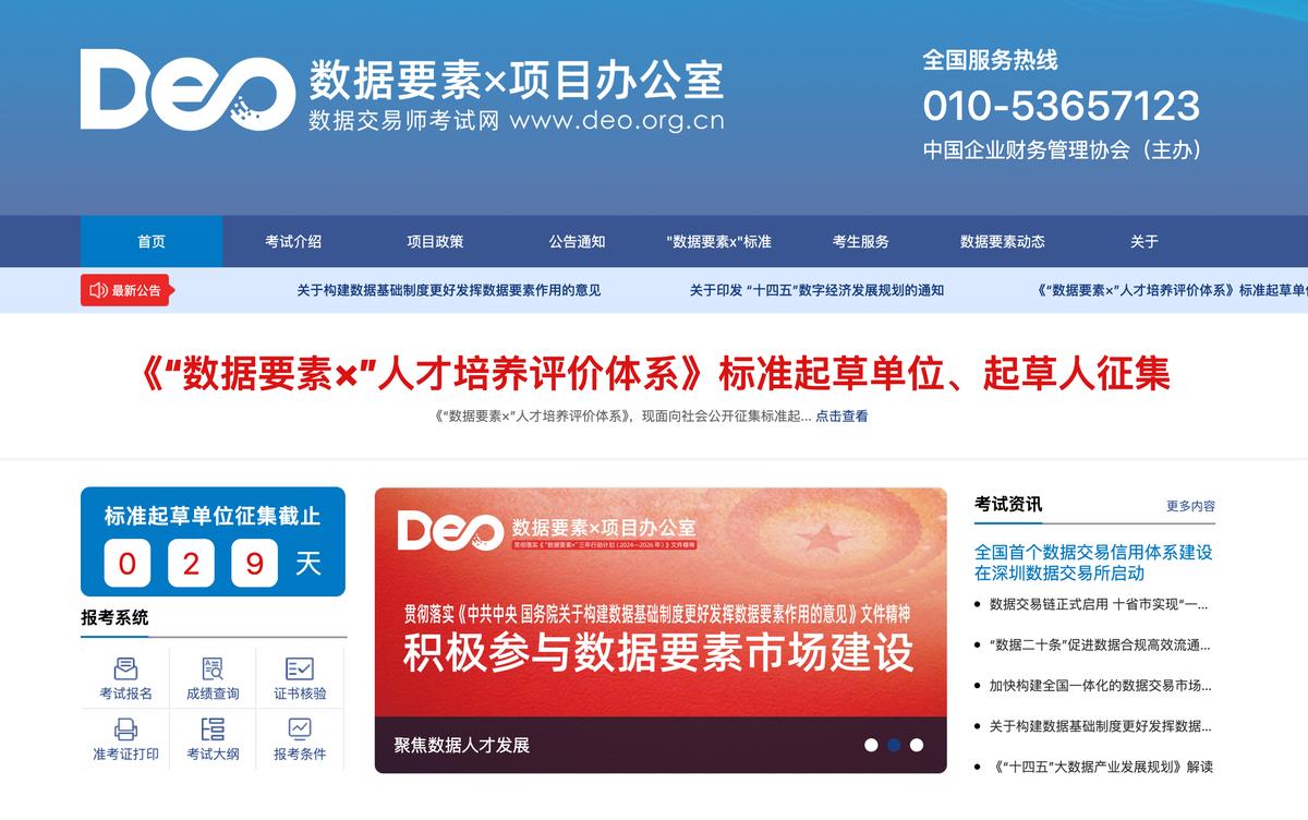 数据要素×项目办公室近日发布了关于《“数据要素×”人才培养评价体系》标准起草单位、起草人征集的公告,面向全社会公开征集标准起草单位、起草个人,以下是公告原文:
