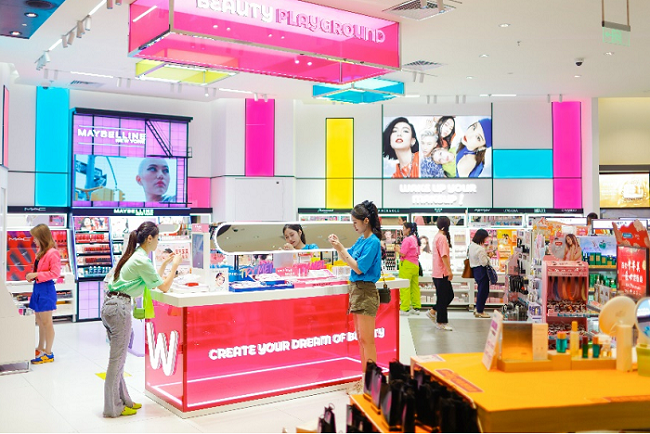 可见,消费者在屈臣氏获得的「体验」和「情绪」十分受用。以去年推出「潮玩妆造区」为例,屈臣氏以洋红、明黄、海蓝等多巴胺流行色区隔不同妆造品类,在色彩设计、功能分割等方面持续迭代,营造“美妆游乐场”氛围,吸引不少喜爱美妆的潮人打卡。屈臣氏还开辟了香氛专区,并升级了健康乐活专区,这样不仅激活了线下的体验价值,串联跨品类品牌向顾客传达健康悦己的生活理念。