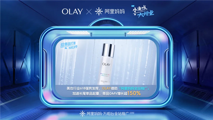 以美妆行业为例,今年天猫618开售4小时,就有118个美妆单品成交额破千万。OLAY作为行业标杆品牌,希望在618期间加速单品起量。获得更多自然流量推动成交爆发,是品牌的主要经营诉求。借助「阿里妈妈全站推广」的付免联动机制,OLAY成功提升流量分配效率,不仅实现了ROI的确定性交付,更是带动长尾单品GMV增长超150%。