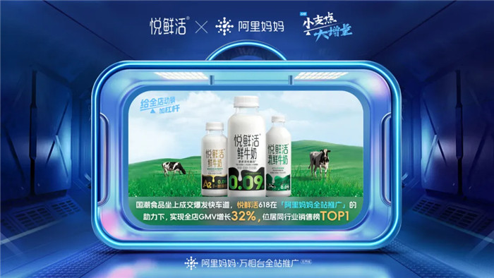 「阿里妈妈全站推广」在盘活淘系全局流量后,能使商家在ROI确定性交付的基础上,带动商品成交额全面提升,并获得最大化的生意成交规模。国潮食品赛道的领跑品牌悦鲜活,就早早布局参与「阿里妈妈全站推广」内测,4月前置测试多款货品后,在618大促期间选定销量权重高、价格力占优势、限时大促爆品投放「阿里妈妈全站推广」,并配合单品优势调整ROI放量策略,成功推动潜力款升级为日常爆款,大促款限时流量也有显著提升,最终实现全店成交同比去年增长32%,位居天猫618低温乳品店铺销售榜TOP1。