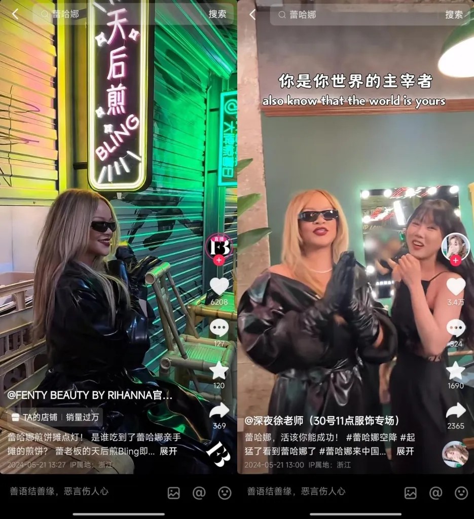 图源:FENTY BEAUTY BY RIHANNA抖音官方账号(左)、深夜徐老师官方账号(右)