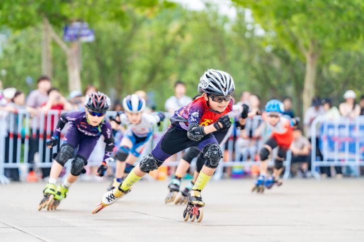 2024 年全国“冰轮之星·滑起来 ”系列赛事天津赛区将有四个区举办“冰轮之星·滑起来 ”城市英雄赛,在城市英雄赛中 通过短道速度轮滑比赛获得各组别前八名的运动员将参加8 月下旬举行的“冰轮之星·滑起来 ”省级挑战赛。届时,所有成功 晋级的运动员们将在赛前进行轮转冰训练营活动,随后进行相应的短道速滑省级挑战赛。