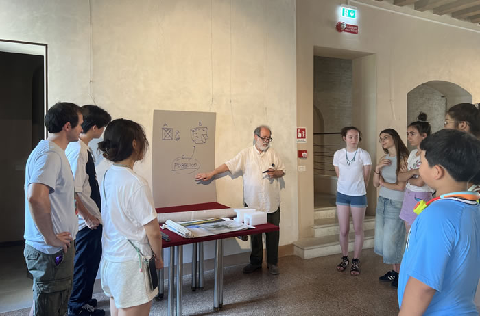 对于中意两国的10位青少年学生而言,本次活动不仅是一次展览,更重要的是一次全过程的艺术实践活动。意大利文化与艺术交流协会主席拉斐尔·帕多瓦 (Raffaello padovan)亲自担任本次联展的策展人。在布展的间隙,主办方安排了两场关于文艺复兴以及现代艺术展览的主题讲座,让学生们系统地了解了艺术品在博物馆中的展陈方式,以及现代艺术展览中的策展和布展规则。在拉斐尔先生的指导下,10位意中青少年学生全程自主组织展览中小组讨论、策展原则、布展规划,开幕方案、现场讲解与观众导引等各个环节,每个人分工明确又协同合作,通过实地操作,高效地将这些知识和规则运用到实践当中。