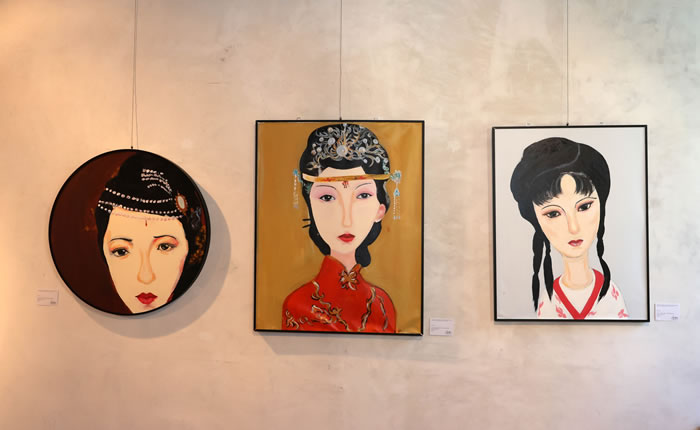 中国学生参展作品以油画、水彩和综合材料作品为主,其中徐嘉骏油画作品以其丰富的色彩和质感,呈现了强烈的视觉冲击力;张潇予的油画风景色彩淡雅,充满了宁静氛围;王芗宁的油画风景多以中国传统的亭台楼阁为题,色彩优雅,充满了东方古典诗意;戴丽泽的红楼梦人物系列色彩饱满,刻画细腻,呈现出人物丰富的内心情感;王雨菲的作品多以平远构图为主,色调优美,以空旷寥廓的视角呈现出大海、河流山川的寥廓与壮丽;贺明晨一组综合材料作品,细致地描述从飞鹤的诞生、飞翔到遭受网罗和毁灭,再到涅槃重生的过程,显示了作者对于成长过程中挫折和困惑有着深刻的认知和理解,也体现了他对材料的创新运用和对艺术表达方式的大胆尝试。从具象到抽象,从色彩到构图,中国学生的作品呈现出娴熟的技巧和丰富的想象,其中不乏对传统技法的现代诠释,也有对抽象概念的探索。