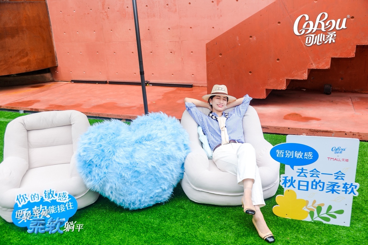 9月20日至22日,可心柔在上海EKA天物园区举行了一场以“世界坚硬,柔软躺平”为主题的线下互动活动,旨在为处于大城市快节奏生活下的“都市隶人”们打造一个可以“柔软躺平”的心灵社区,无论你是什么角色什么身份,都可以在这里“躺躺平、舒舒缓”。在生活的忙碌起落中,可以多一份温柔的治愈体验。