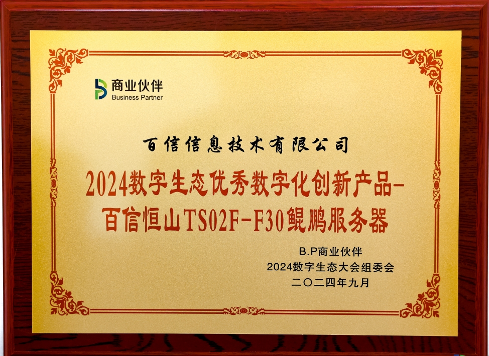 9月21日,主题为“向新而行 融合共赢”2024数字生态大会在风景秀丽的昆山阳澄湖畔盛大启幕。大会期间,备受瞩目的”2024数字生态500强榜单&奖项”盛大揭晓。百信信息技术有限公司(简称百信)受邀出席本次大会,并凭借在信息技术应用创新领域的不凡实力和卓越表现,揽获“2024数字生态信创领军企业”与“2024数字生态百信恒山TS02F-F30鲲鹏服务器优秀产品”两项大奖。