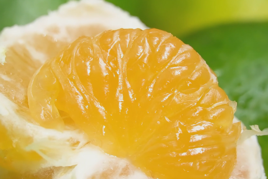 因此,生长于郴州东江湖库区的蜜橘,个个皮薄肉厚,口感鲜嫩、酸甜多汁。轻轻掰开一瓣蜜橘丢进嘴里,橘瓣很快化开,变成一粒粒分明的果肉颗粒,在咀嚼中,果肉一颗颗爆开,汁水清新甜蜜。