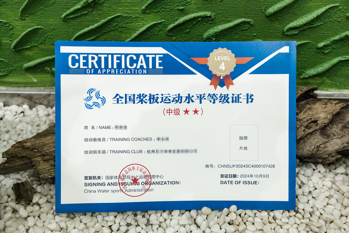 全国桨板运动水平等级证书是由国家体育总局水上运动管理中心颁发,分为三星六级,在国内认可度极高。持证者有机会参加相应级别的国内赛事,赛事取得名次可获得相应国家运动员技能等级证书,部分情况下还可享受高考加分政策,特别是通过单招渠道进入体育院校。