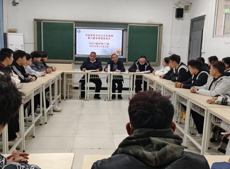 为进一步落实领导干部联系师生工作,更好了解学生在校学习和生活情况,12月2日,四川三河职业学院党委书记叶昌伦教授,深入联系的护理专业2024级17班开展座谈交流,卫生健康学院党总支部书记杨杰、辅导员肖荣以及全班体同学参加座谈会。