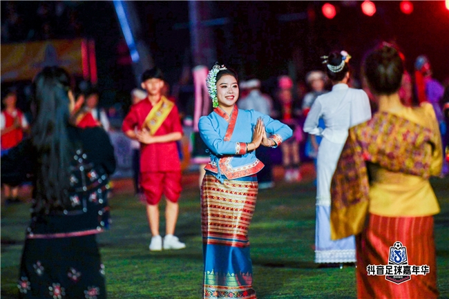 值得一提的是,西双版纳地处中老边境。中老铁路开通以来,两国人民互动日益频繁。为增进中老友谊,活动在半决赛期间,特别邀请了老挝代表队与谢晖、李毅等前国脚“加盟的”云南玉昆职业足球俱乐部足球队,进行了一场明星友谊赛。比赛现场,老挝留学生和云南少数民族同胞“合体”跳起打跳舞,共同见证中老友谊。在总决赛日,也有老挝主题花车、220人的老挝留学生代表团、老挝外援球员等参与活动。