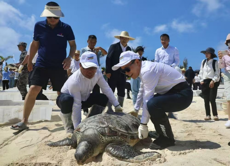 2025年4月23日,由农业农村部、海南省人民政府、中国海洋石油有限公司共同主办的,以"护你远行,等你'龟'来"为主题的2025年西沙海龟放流活动在海南省三沙市成功举办。此次放流的海龟中有50只是“海合安文旅”旗下成都极地海洋公园自繁绿海龟;截至目前海合安文旅已成功放流自繁绿海龟150余只,为海龟繁育保育和野外资源修复提供了重要支持,助力野外海龟种群的恢复。