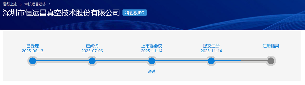 11月14日,深圳市恒运昌真空技术股份有限公司(以下简称“恒运昌”)上交所科创板首发上市申请过会并提交注册。